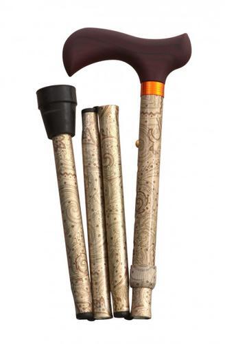 Összecsukható, 4 részes, állítható magasságú divatos járóbot csuklópánttal, Fashion, Bézs kasmír