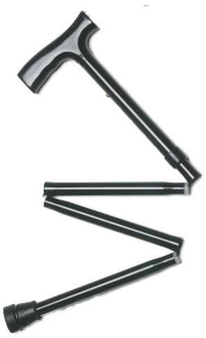 Összecsukható, 4 részes, állítható magasságú divatos járóbot csuklópánttal, fekete